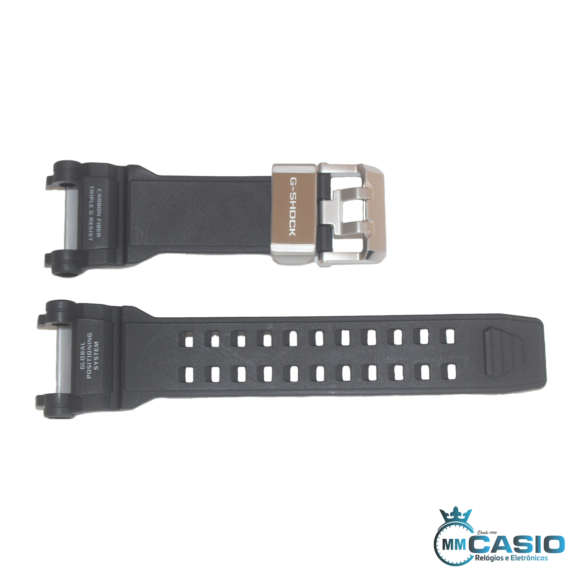 Pulseira – Band Casio G-SHOCK Original Carbon Fiber GPW-2000 GPW-2000-1A/GPW-2000-1ADR Cor PRETO FOSCO Material da pulseira – borracha/passador em aço com escrita G-SHOCK – fivela em aço.