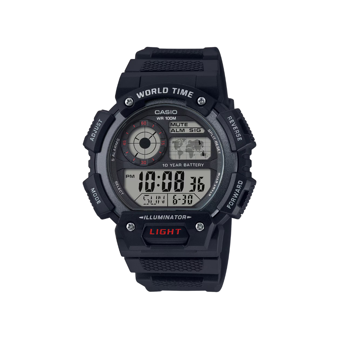 Hora mundial 31 fusos horários (48 cidades + tempo universal coordenado), ativação/desativação de horário de verão, troca de Cidade local/cidade da Hora mundial